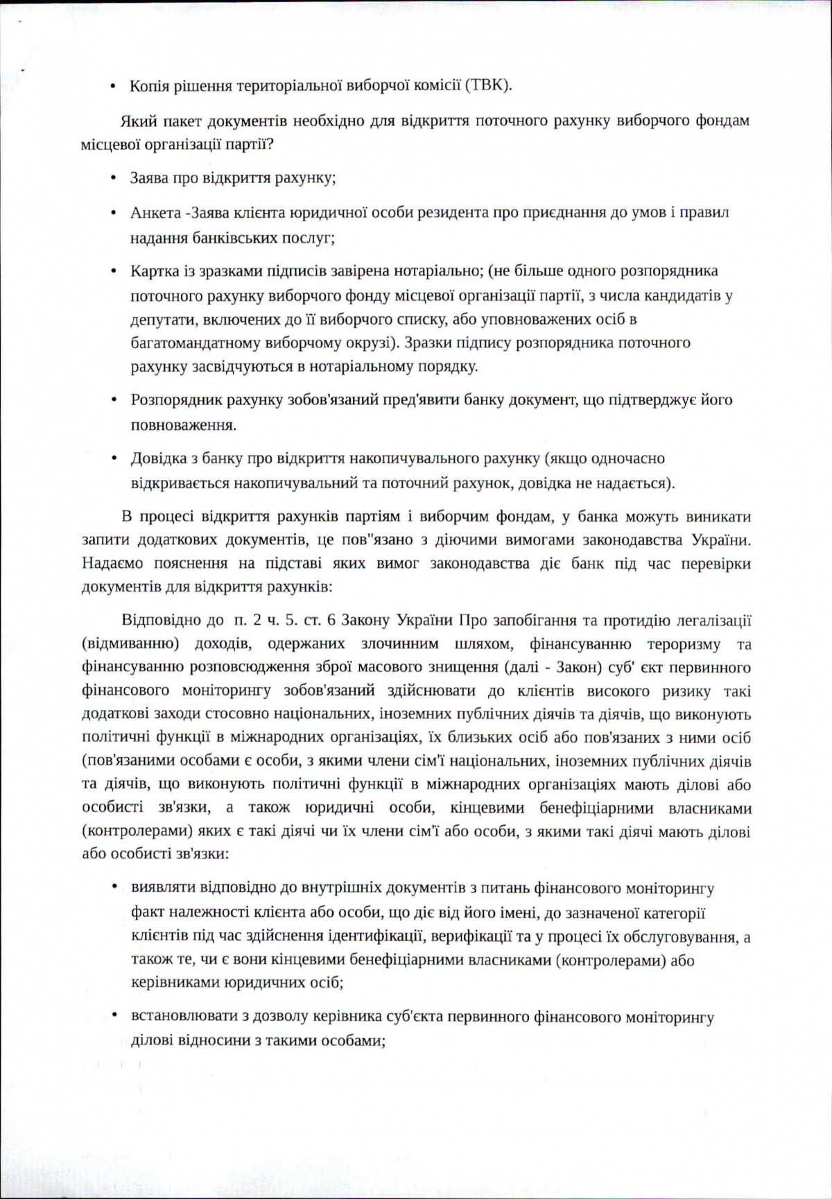 18 січня 2019, 13:38 останні оновлення: 05 вересня 2022 Про діючий у банку порядок відкриття рахунків для партій і виборчих фондів