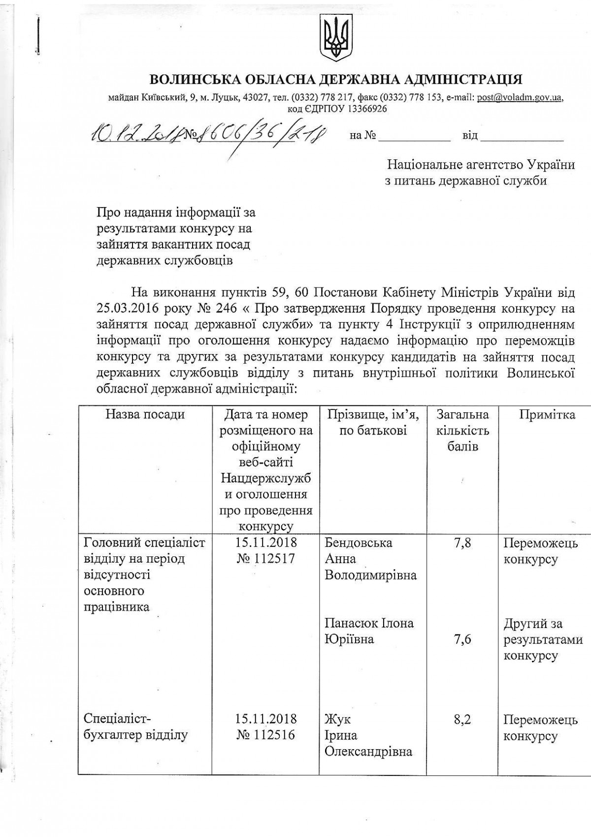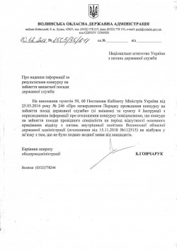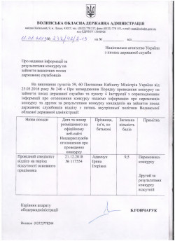 10 грудня 2018, 16:38 останні оновлення: 23 вересня 2020 Про надання інформації за результатами конкурсу на зайняття вакантних посад державних службовців