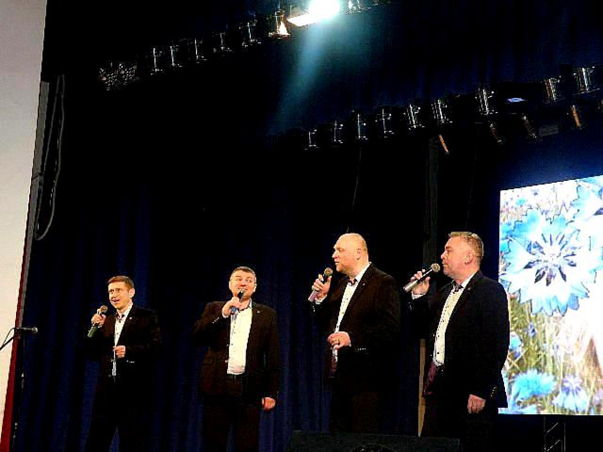 Блок із чотирьох пісень приготував у подарунок чоловічий вокальний квартет “Акорд” у складі заслужених артистів України Андрія Зарицького, Олега Гонтаря, Віктора Мрочка та Миколи Палія, виконавши – акапельно, ‒ “Марічку” Степана Сабадаша і Михайла Ткача та всесвітньовідому серенаду Сміта з опери Жоржа Бізе “Пертська красуня” . Цікаво прозвучали у виконанні “Акорду” твори в інструментальному супроводі – “Горить горобина” Олександра Злотника та Миколи Мельникова і “Пісня буде поміж нас” Володимира Івасюка.