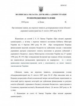 30 грудня 2020, 15:57 останні оновлення: 10 лютого 2022 Про визнання такими, що втратили чинність розпорядження голови облдержадміністрації