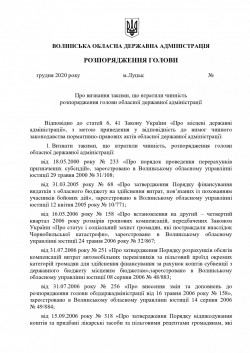 30 грудня 2020, 16:01 останні оновлення: 10 лютого 2022 Про визнання такими, що втратили чинність розпорядження голови облдержадміністрації
