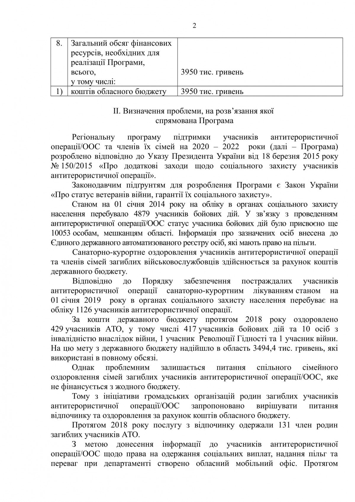 18 лютого 2019, 11:16 останні оновлення: 28 лютого 2019 Проект регіональної програми підтримки учасників антитерористичної операції/ООС та членів їх сімей на 2020 – 2022 роки