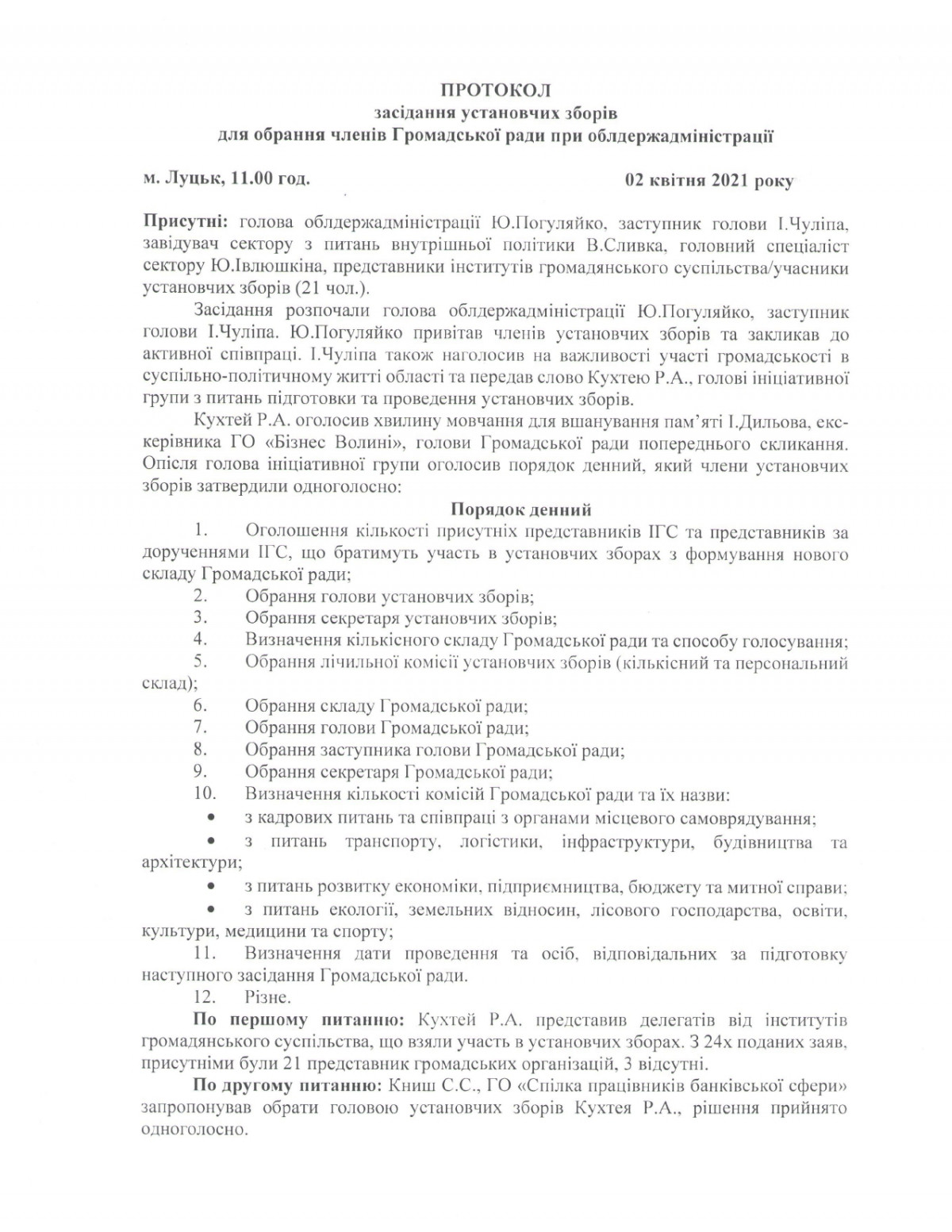 Протокол установчих зборів для обрання членів Громадської ради при облдержадміністрації від 02.04.2021