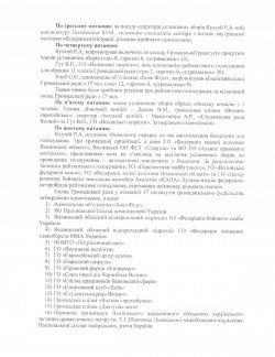 По третьому питанню: на посаду секретаря установчих зборів Кухтей Р.А. вніс кандидатуру Івлюшкіної Ю.М., головного спеціаліста сектора з питань внутрішньої політики облдержадміністрації, рішення прийнято одноголосно.