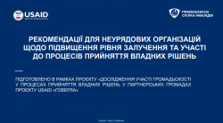 Рекомендації для органів місцевого самоврядування та неурядових організацій щодо підвищення рівня залучення та участі мешканців громад до процесів прийняття владних рішень та формування місцевої політ