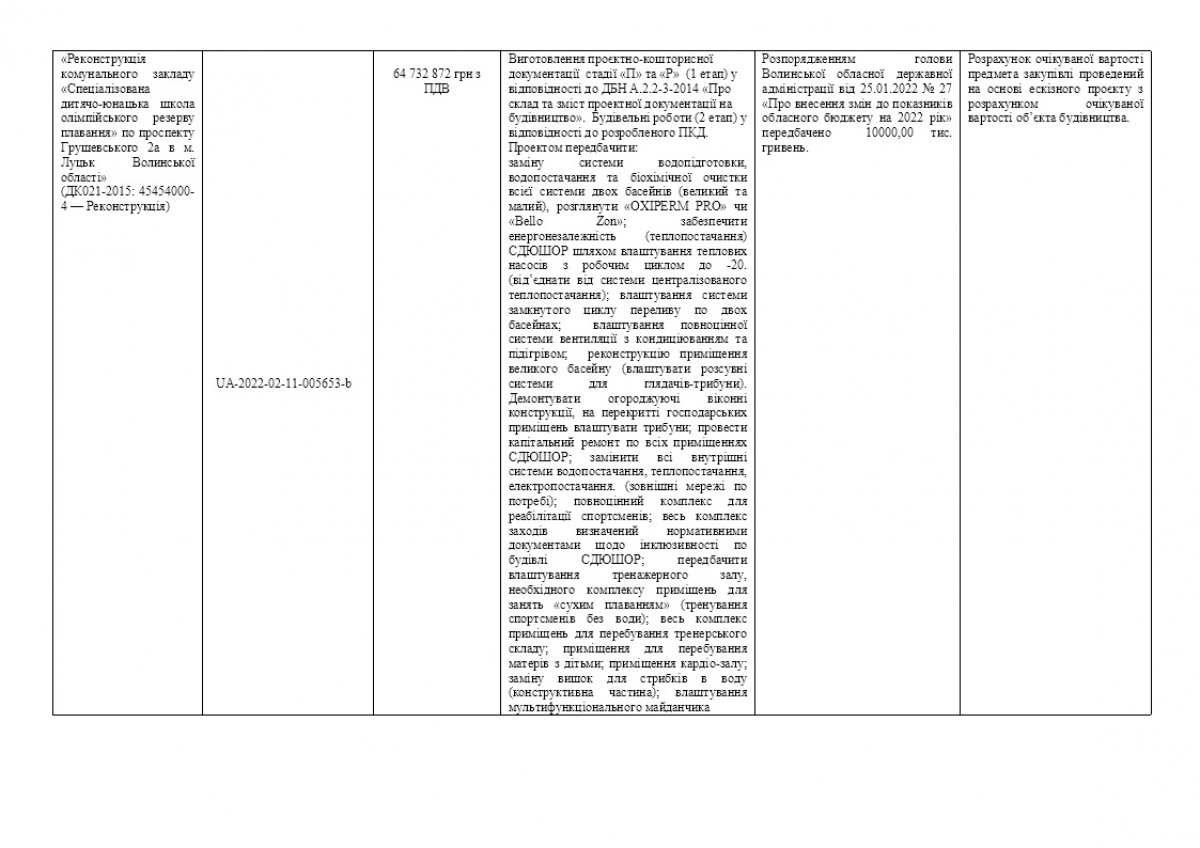 «Реконструкція будівлі Обласної дитячо-юнацької спортивної школи Волинської обласної ради, з добудовою спортивного залу для ігрових видів спорту по вул Шевченка, 3 в м. Луцьк Волинської області»
