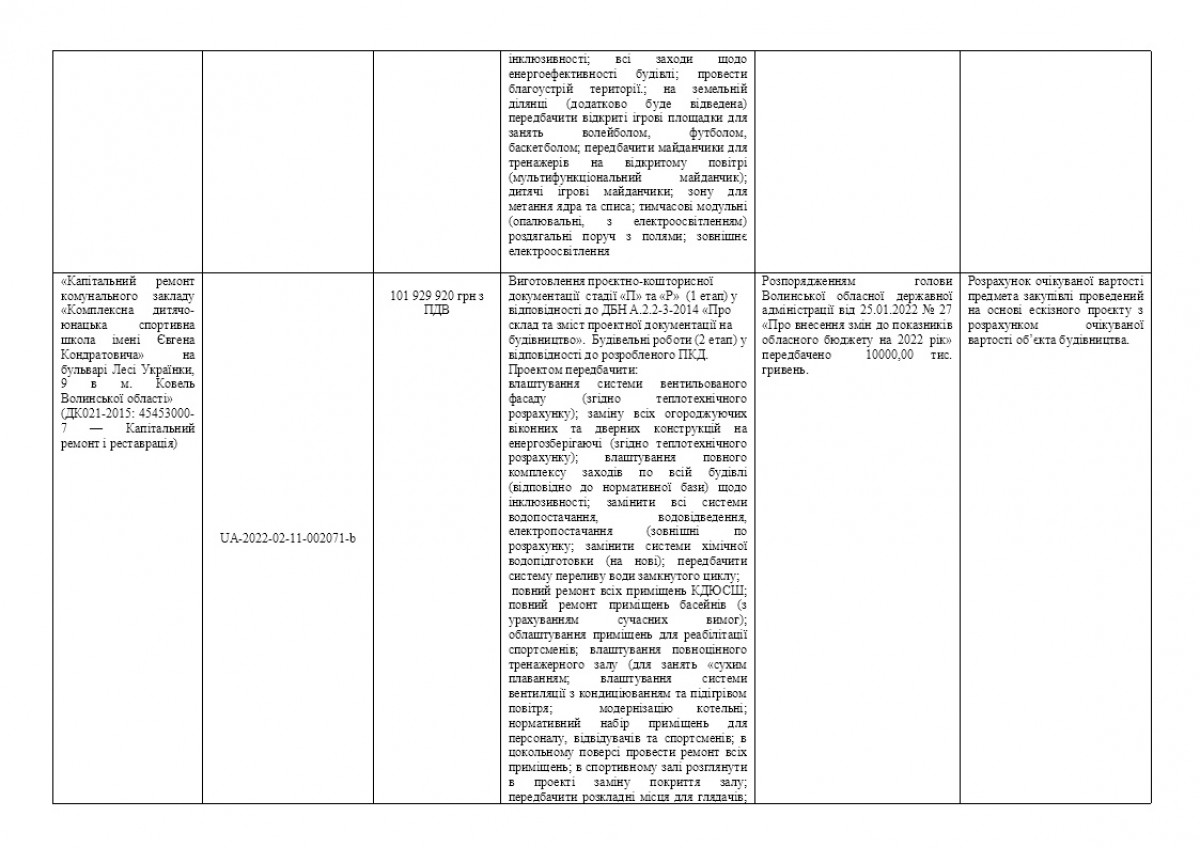 14 лютого 2022, 15:45 останні оновлення: 21 жовтня 2024 «Реконструкція комунального закладу «Спеціалізована дитячо-юнацька школа олімпійського резерву плавання» по проспекту Грушевського 2а в м. Луцьк Волинської області»