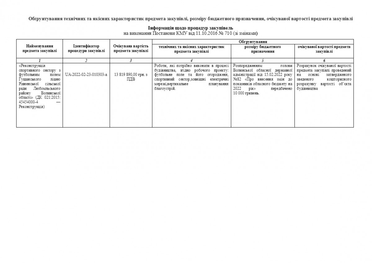 01 березня 2022, 11:10 останні оновлення: 21 жовтня 2024 «Реконструкція спортивного сектору з футбольним полем Гущанського ліцею Рівненської сільської ради Любомльського району Волинської області»