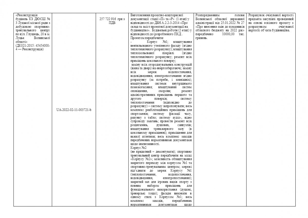 14 лютого 2022, 15:44 останні оновлення: 21 жовтня 2024 «Реконструкція тренувальної бази Володимир-Волинського ліцею «Центр освіти» по вул. Незалежності, 169А в с. Пульмо Волинської області»