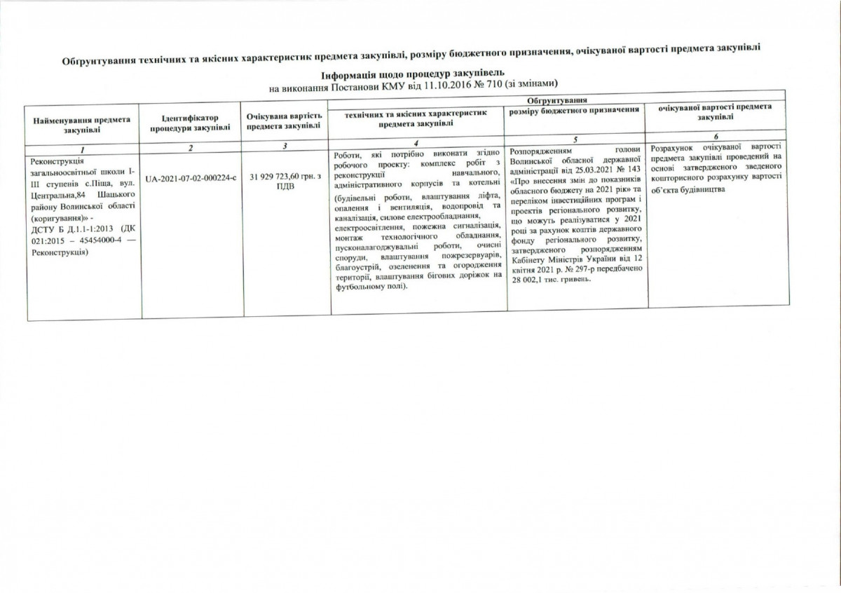02 липня 2021, 09:38 останні оновлення: 21 жовтня 2024 «Реконструкція загальноосвітньої школи І-ІІІ ступенів с.Піща, вул. Центральна,84 Шацького району Волинської області (коригування)