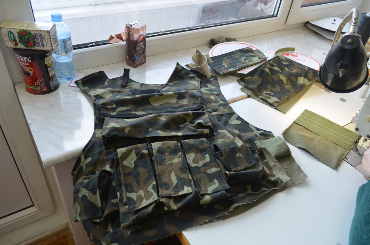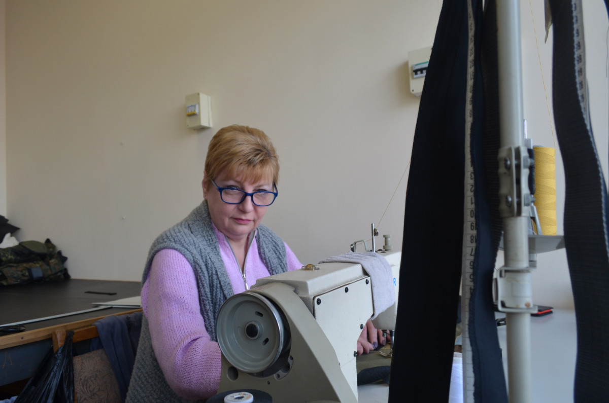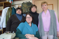 Під вправними руками працівниць із матерії радянських туристських наметів набирає форми таких необхідних для наших воїнів чохлів для бронежилетів, розвантажних сумок. У швейному цеху театру працюють на волонтерних началах Олена Угляница та Любов Щерба для збройних сил України ще з 2014 року, з часу першого збройного походу рашистів на українські терени. На той час найбільша потреба була у балаклавах та бафах. Роботи вистачало, як на роботі, так і вдома. На допомогу прийшли працівниці технічної служби Тетяна Гладун, Лариса Чернова, Тетяна Нечипорук, Світлана Герасимчук.