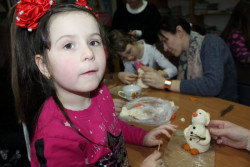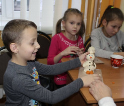 Малеча разом із дорослими поринули у дивовижні пригоди Сніговика-поштовика з казки Володимира Сутєєва «Ялинка», поділилися як створити святковий настрій, як прикрасити оселю. І хоч цьогорічна зима не балує нас снігом, вирішили власноруч зробити символ сніжної зими – сніговика. Дружно та весело діти разом із батьками ліпили сніговичка із солоного тіста і в кожного він вийшов кумедний та гарний.