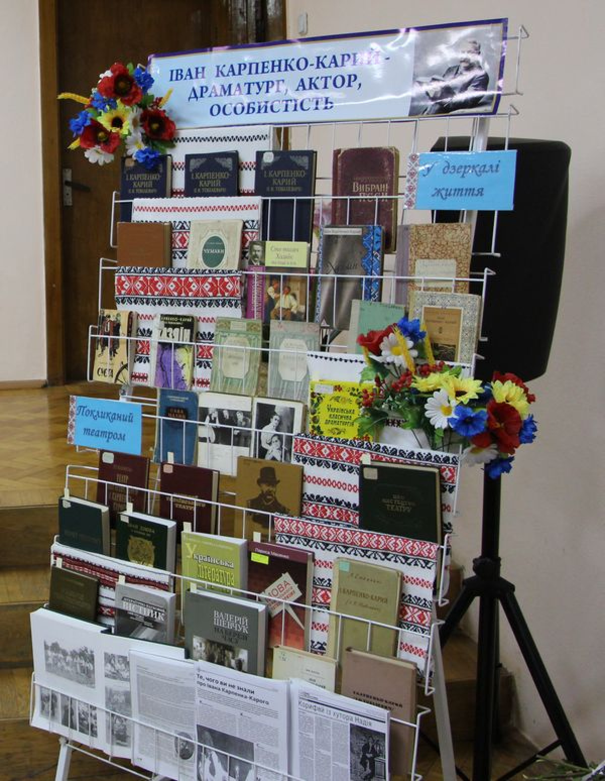 У фондах книгозбірні представлений широкий масив літератури, присвяченої життєвому і творчому шляху Івана Карпенка-Карого. Гості заходу – слухачі університету третього віку та громадяни, якими опікується центр соціального обслуговування громадян похилого віку м. Луцька, мали змогу ознайомитися з книжковою виставкою „Іван Карпенко-Карий – драматург, актор, особистість”.
