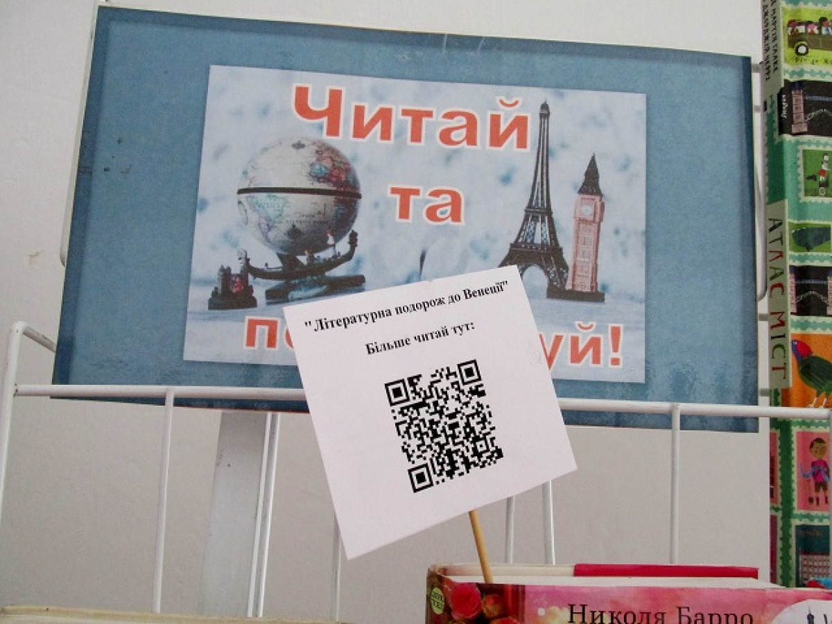 Виставка-інсталяція «Читай та подорожуй» представила художні тексти-подорожі та містила Qr-коди – посилання на матеріали блогу «Територія читання, книги, журнали, святкування #літературні подорожі.