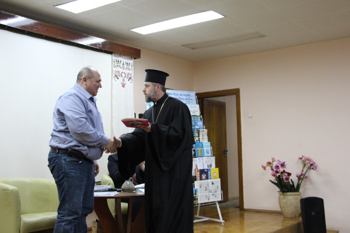 Настоятель храму Великомученика Юрія Переможця Микола Цап вручив Миколі Мартинюку найвищу відзнаку української православної церкви «За жертовність».
