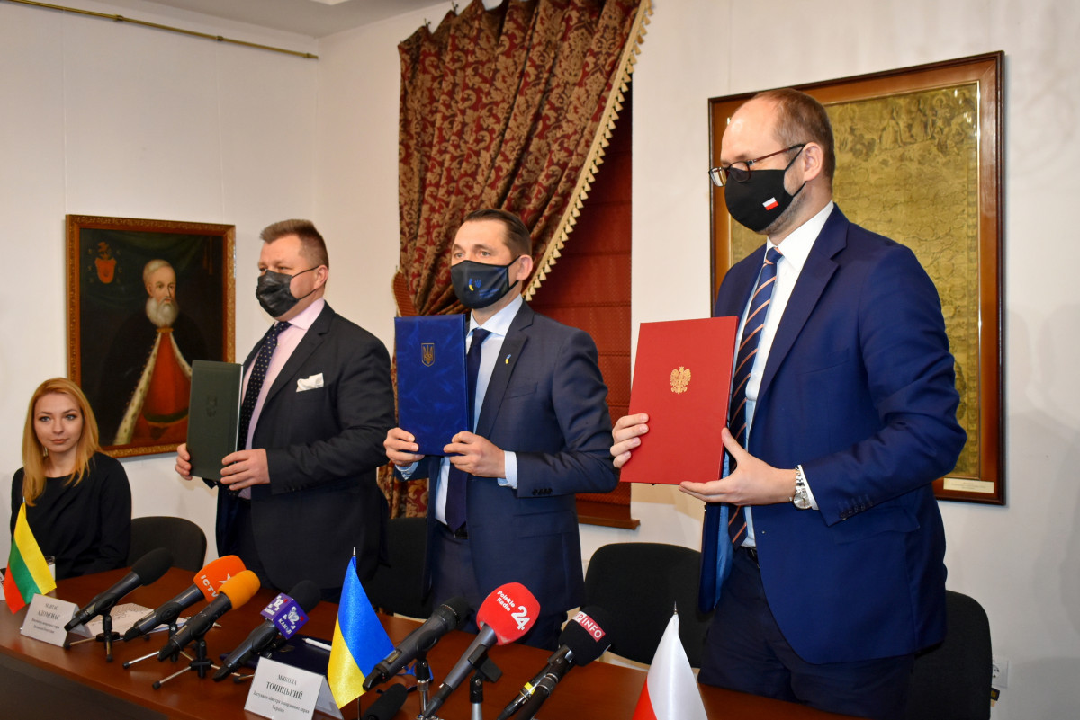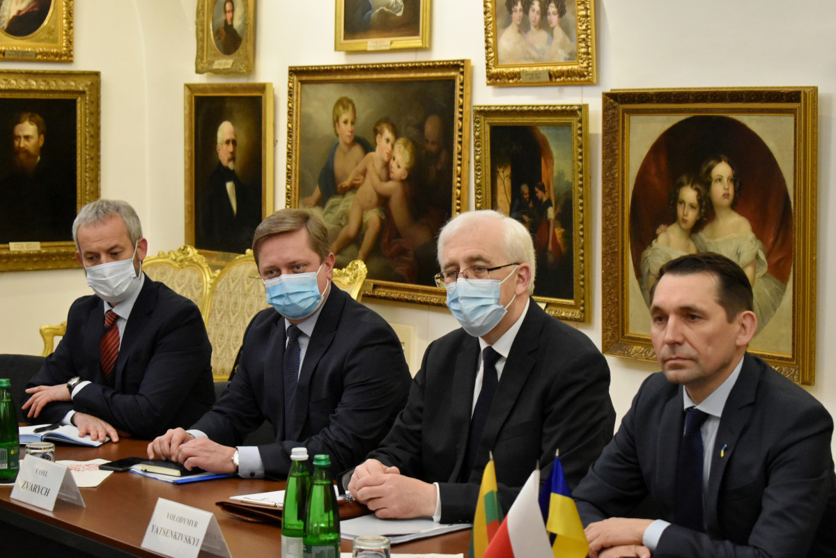 Микола Точицький, Марцін Пшидач та Мантас Адомєнас детально обговорили безпекову ситуацію в регіоні на тлі міграційної кризи на кордонах ЄС з Білоруссю та військовою ескалацією з боку РФ поблизу державного кордону і на тимчасово окупованих територіях України.