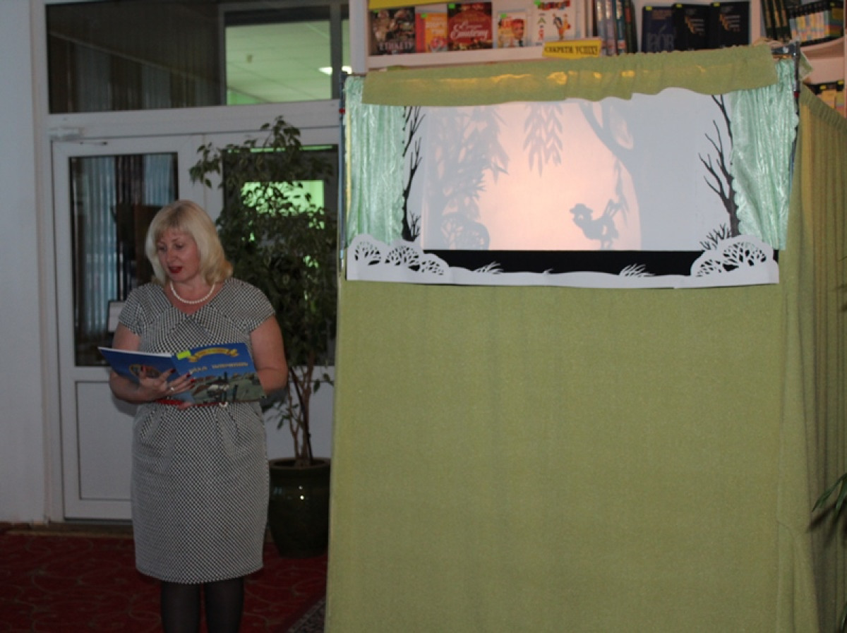 За допомогою тіньових силуетів бібліотекарі яскраво передають сюжет твору, де горобчик звертається до курки, зозулі, бузька, ґави, сови, сороки, щоб ті навчили його розуму. І тільки поважний крук відповів горобчику-бешкетнику: “Розум, молодче, по дорозі не валяється, не так-то легко його знайти! А я тобі от що скажу: поки біди не знатимеш, то й розуму не матимеш. От тобі моя наука”. З великими труднощами пережив горобчик зиму, зазнав холоду й голоду. Все пережите загартувало його. Він приглядався до життя інших птахів і став добрим господарем, ніжним і дбайливим батьком. У казці стверджується, що розум, досвідченість і серйозність приходять не самі собою, а є результатом життєвого досвіду. Основна думка твору “Біда навчить” про те, що не треба боятися труднощів у житті, а треба завжди вчитися, набувати знань і умінь, щоб переборювати негаразди. Такий висновок зробили учні 6-В класу гімназії № 14, які завітали на виставу.