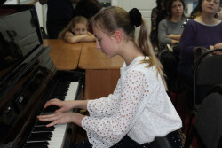 Творчість Шопена – це величезний світ незвичайної краси. Слухаючи його, забуваєш про те, що слухаєш всього один інструмент – фортепіано. Перед тобою відкриваються безмежні простори, розчиняються вікна в невідомі далі, повні таємниць і пригод. І дуже хочеться, щоб цей новий світ знову відкрився, і вже не покидав тебе ніколи. Для семикласників Луцької гімназії № 4 імені Модеста Левицького чарівні твори композитора виконували учні Луцької музичної школи №1 імені Фридерика Шопена, а саме: Нана Лащ – «Забутий вальс» a-moll, Телошова Юлія – Вальс As-dur, Верзун-Ролінгер Тереза – Вальс cis-moll, Шевчук Аліна – Вальс, Скрябіна Надія – Етюд f-moll.
