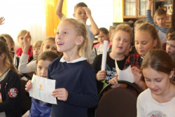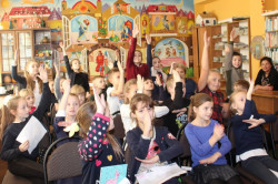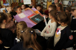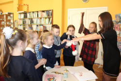 Зустріч з молодою та дуже талановитою письменницею Катериною Ємець, яка відбулася у Волинській обласній бібліотеці для дітей 19 грудня, запам'ятається учням 3-Б класу гімназії № 4 надовго. І не тільки тому, що й письменниця колись була ученицею цього навчального закладу. Просто дітям страшенно сподобались казки з книги "Казка на щодень", яку авторка презентувала у бібліотеці. Кожна історія з цієї збірки, окрім присипаних золотим пилком подій, розкриває цілком реальні проблеми дитячого світу. Діти вчилися долати різноманітні страхи за допомогою малюнків до казки "Хто живе у пітьмі". Хлопці й дівчата придумали та намалювали фантастичних персонажів, які будуть жити у темряві їхньої кімнати та охороняти сон. А ще всі присутні відчули себе трішки акторами, розігруючи змову шкарпеток. Зустріч відбулась на такому величезному позитиві, що не хотіли прощатись з пані Катериною і просили продовження діалогу.
