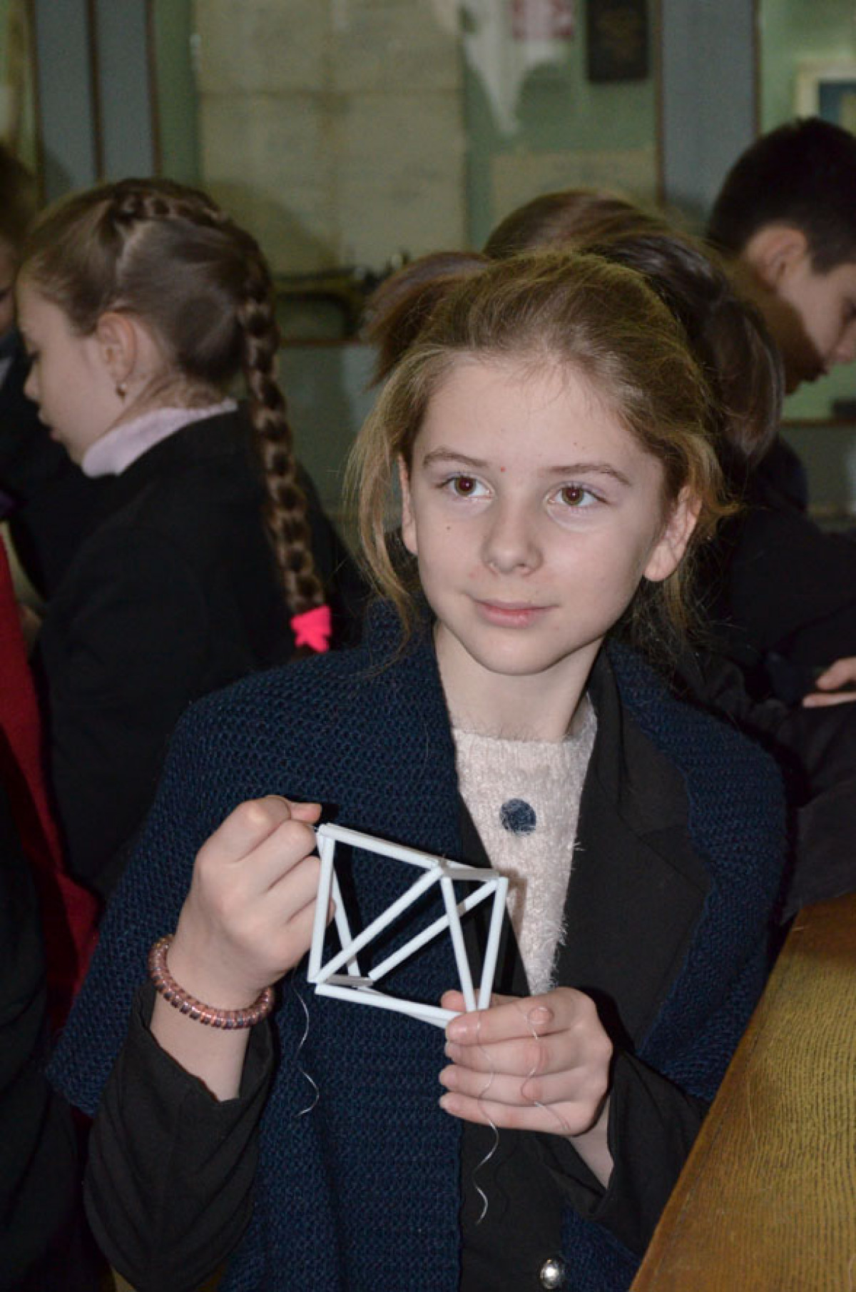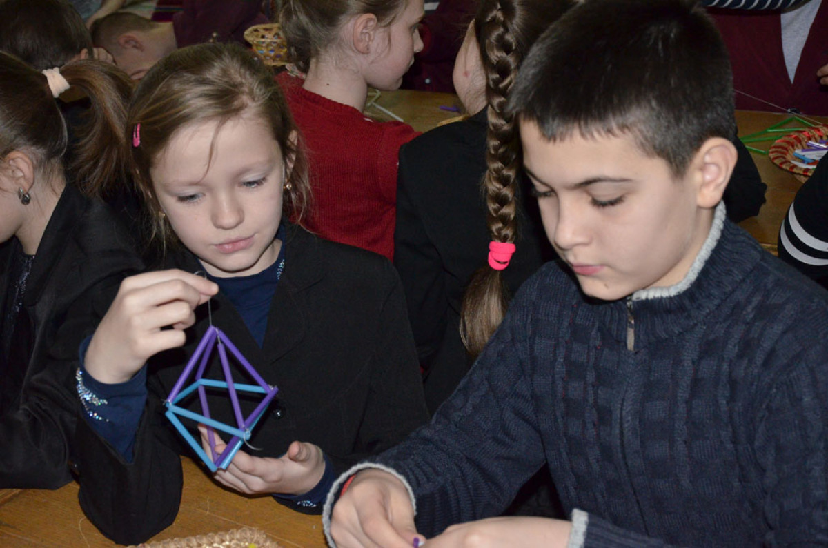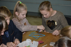 На практичному занятті школярі створювали різдвяного «павука». Спочатку виготовлялися деталі, які по завершенні утворили єдину конструкцію, що прикрашатиме їх клас.