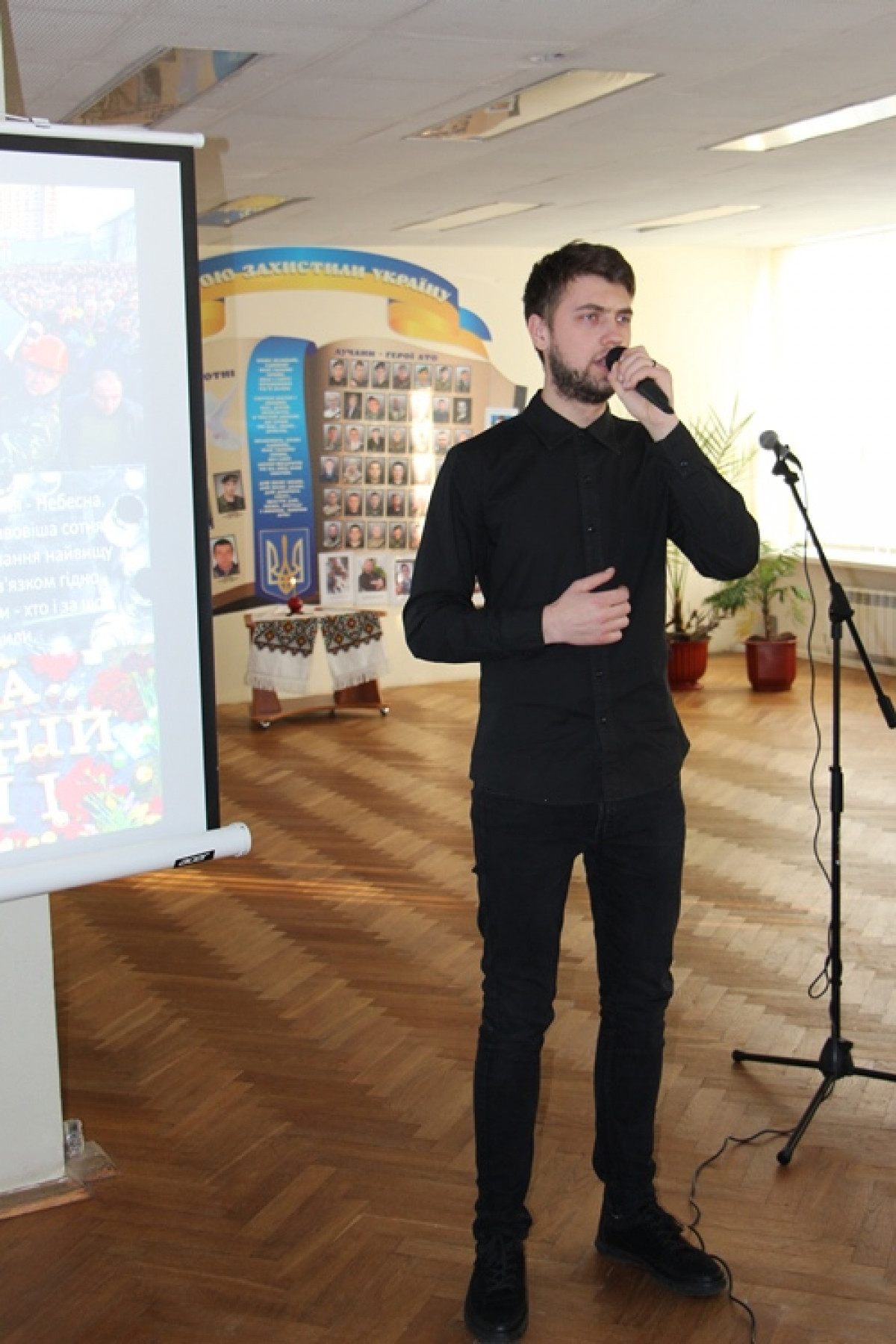 Урок пам’яті організований спільно зі студентами комунального закладу вищої освіти «Луцький педагогічний колеж» Волинської обласної ради. Так поезію, присвячену подіям Революції Гідності, прочитали члени клубу «Всесвіт» Дарина Гузь, Ангеліна Клевець, Софія Баласанян. У виконанні Олександри Юрчук та Павла Шеметюка була запропонована сценка «Героям Небесної Сотні». Нікого з присутніх не залишило байдужим звучання пісень «Мамо не плач» та реквієму майданівцям, своєрідного гімну прощання з Героями – пісні «Плине кача» у виконанні Олексія Демчука.