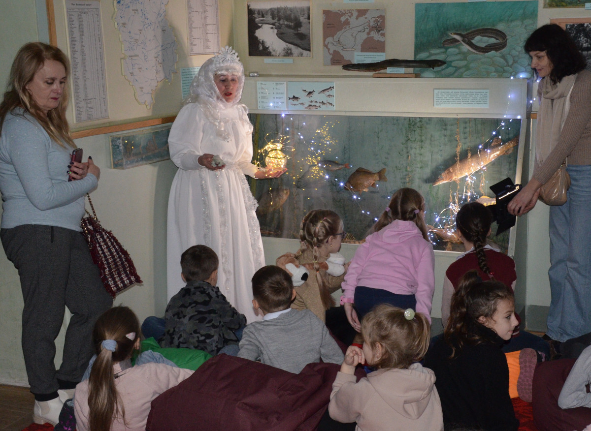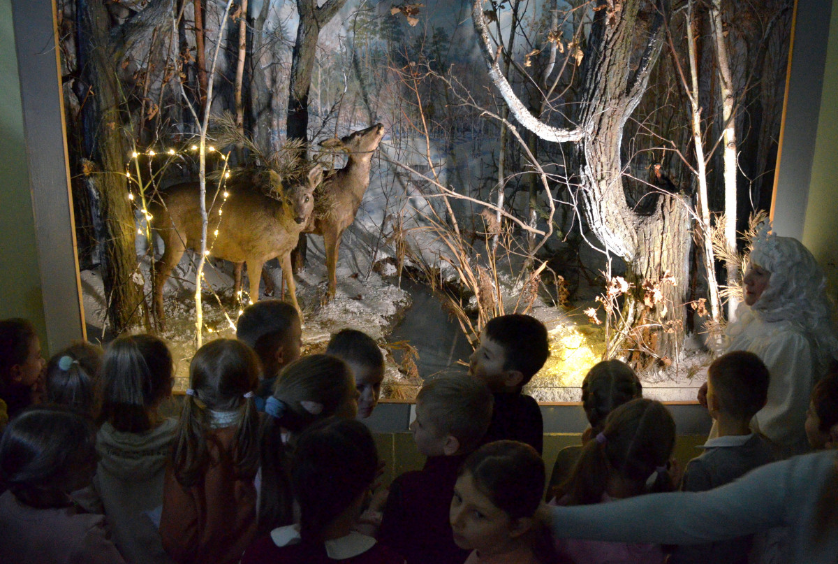 Першими екскурсантами стали учні другого класу Луцького ліцею № 1. Під час проведення музейного дійства діти здійснили подорож залами музею разом із ведучою та казковою гостею – Зимою. Школярі познайомились із життям живої природи взимку, дізнались, як люди допомагають зимувати птахам, підгодовують звірів у лісі, борються із зимовими заморами риб на водоймах Волині.