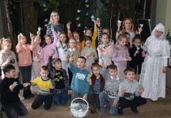 Маленькі відвідувачі почули цікаву розповідь про Святого Миколая, його походження та чому його так шанують у Луцьку, а також дізнались хто такий Санта-Клаус. Із захопленням учні слухали легенду про «луцьке чудо» − чудесний порятунок старовинного Лучеська 19 грудня 1256 року від монгольського загону Куремси.