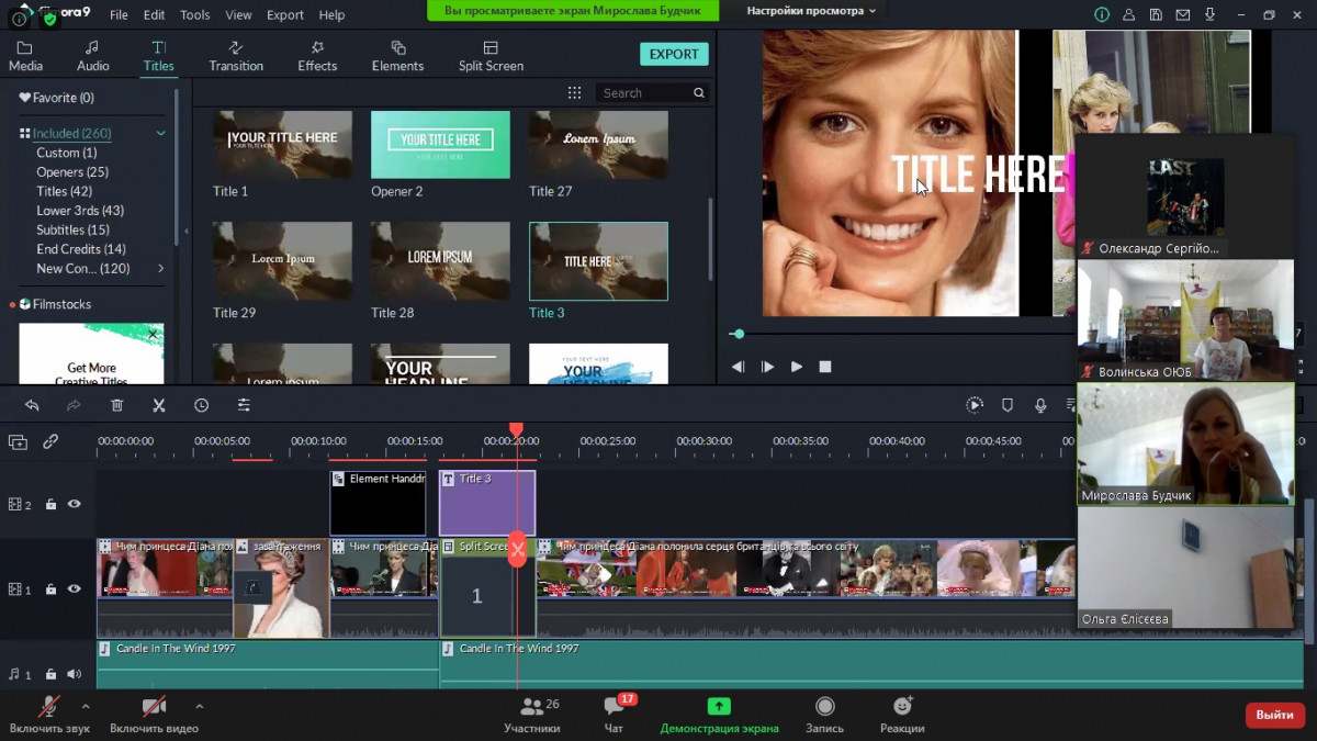Учасників вебзаходу зацікавив майстер-клас з розробки роликів в програмі із монтажу відео від головної бібліотекарки Мирослави Будчик. Вона практично продемонструвала процес створення майстерки та відеосюжету про леді Ді.