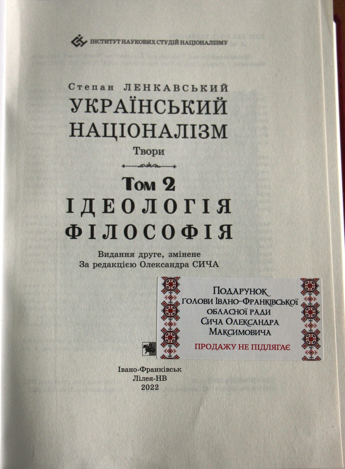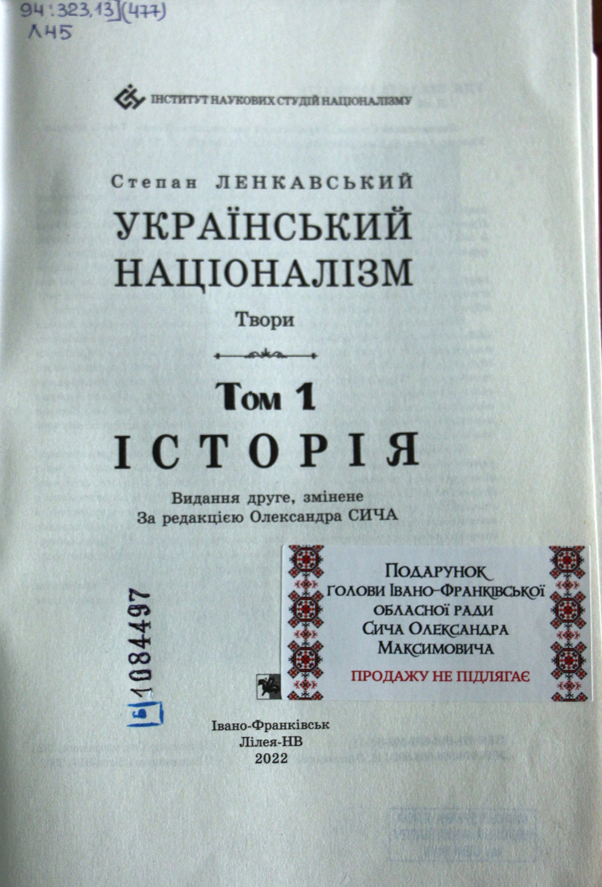 Ленкавський Степан. Український націоналізм : твори / С. Ленкавський ; ред., упоряд. О. М. Сич. – 2-е вид. змін. – Івано-Франківськ : Лілея-НВ. – 2022.