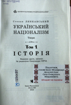 Видання ідеолога ОУН Степана Ленкавського «Український націоналізм» - у фондах Волинської ДОУНБ імені Олени Пчілки