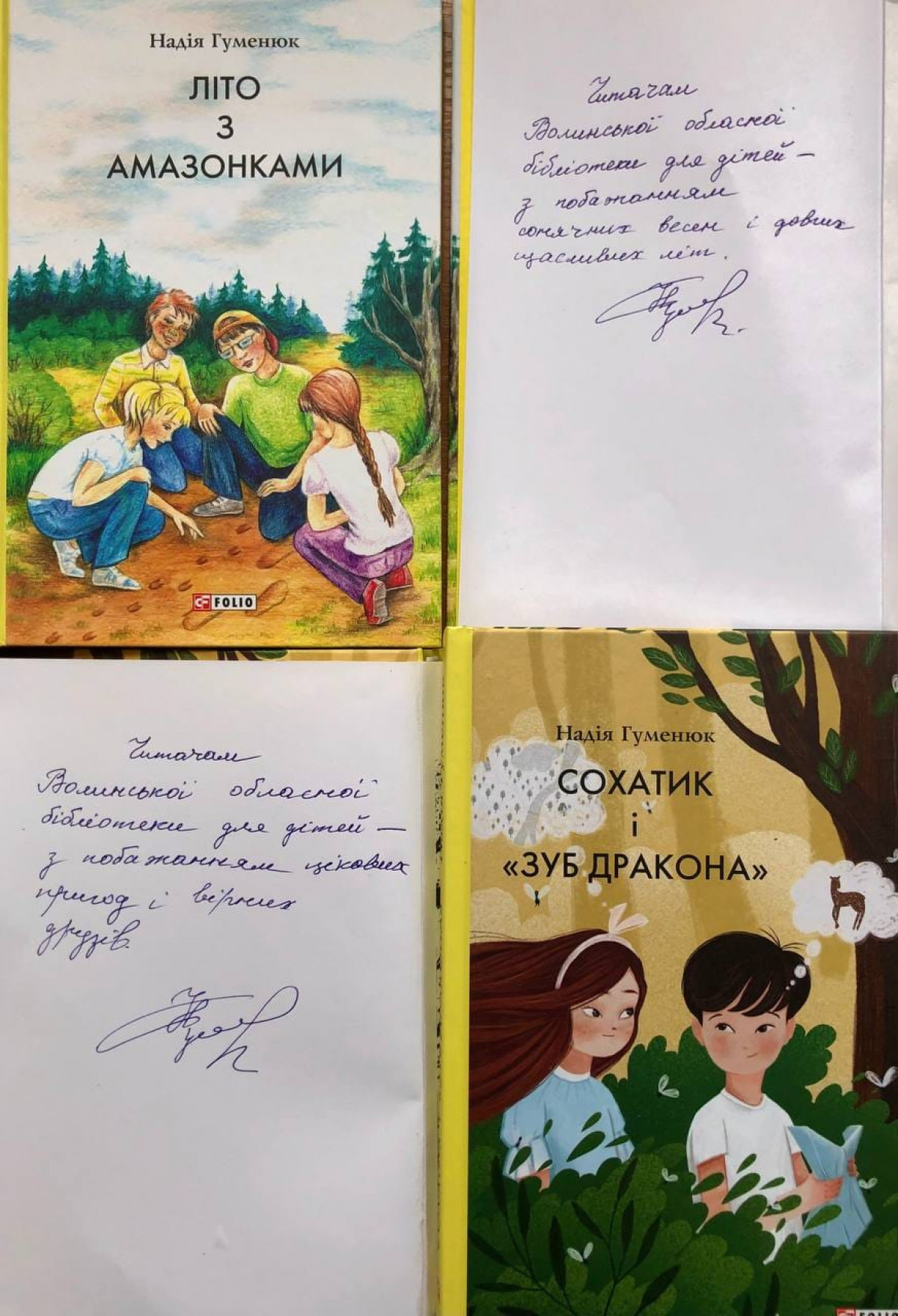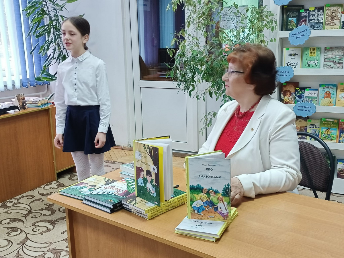 Під час заходу письменниця розповідала учням 6А класу Луцького ліцею № 4 імені Модеста Левицького про свій творчий шлях, створення книг та презентувала нову книжку «Сохатик і «зуб дракона»». Розмова була цікавою й насиченою, діти читали вірші Надії Павлівни та ставили безліч запитань, на які отримували вичерпні відповіді. Автограф-сесія стала гарним завершенням зустрічі, а фонди бібліотеки поповнились новими книгами Надії Гуменюк «Сохатик і «зуб дракона»» та «Літо з амазонками» з найкращими побажаннями письменниці читачам нашої книгозбірні.