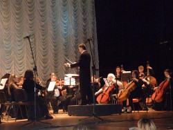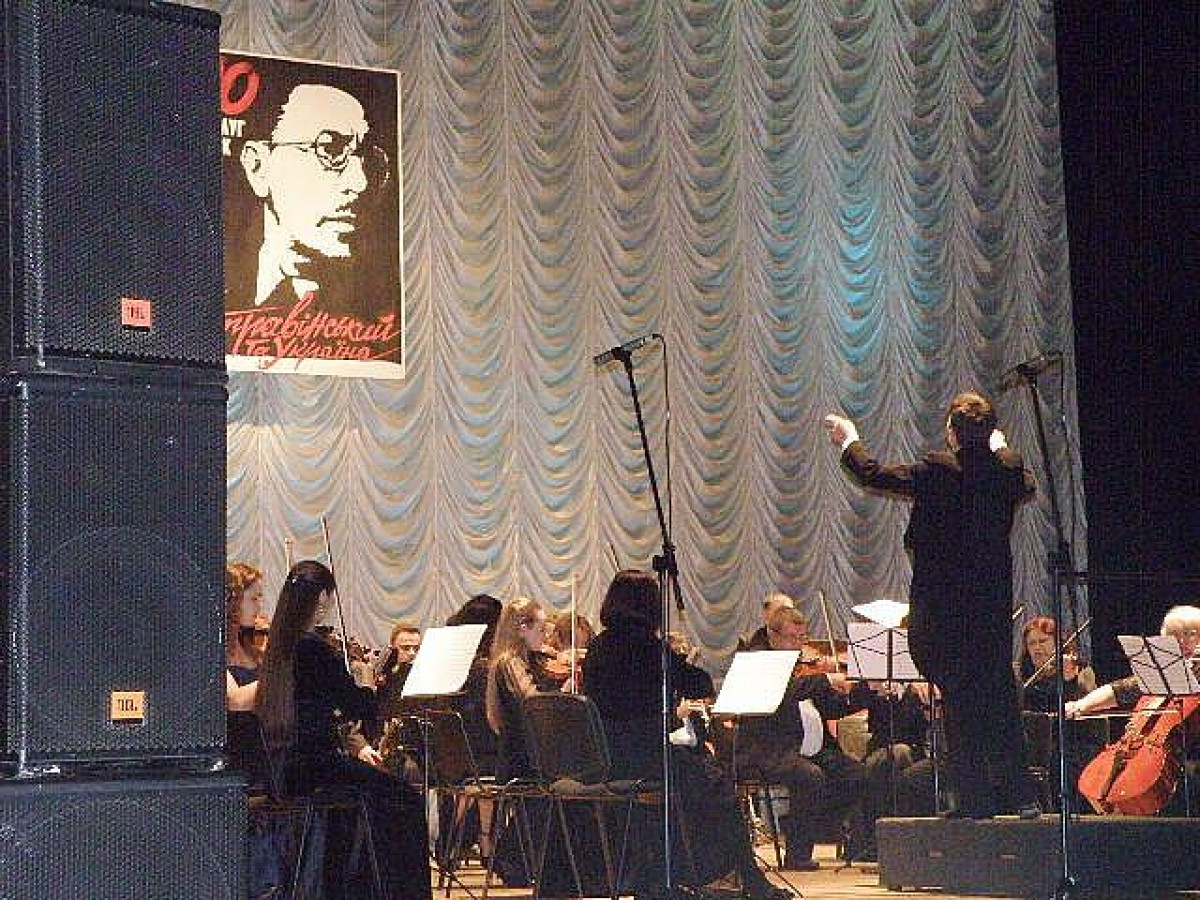І от на сцені Волинського академічного обласного українського музично-драматичного театру імені Т. Г. Шевченка – Академічний симфонічний оркестр Тернопільської обласної філармонії (волинські шанувальники класичної музики уже неодноразово мали нагоду відчути справжню насолоду від виступів цього колективу). Головний диригент оркестру – заслужений діяч мистецтв Мирослав Кріль, але того вечора диригував ще один надзвичайно талановитий митець – і теж заслужений діяч мистецтв України, – Йосип Созанський (пан Мирослав не зміг прибути через стан здоров’я). Першою звучить увертюра Людвіга ван Бетховена з музики до трагедії Йоганна Вольфганга Гете “Егмонт” (1810), пронизана волелюбним духом ‒ адже твір Гете присвячений боротьбі нідерландців за звільнення їхньої Вітчизни від іспанського владарювання у ХVI році (герой трагедії граф Егмонт, який гине в цій боротьбі ‒ власне на самому початку Нідерландської революції, ‒ реальна історична особа), ‒ і саме тому сприймається цілком сучасно (особливо з огляду на реалії українського сьогодення з анексованим Кримом та окупованим Донбасом).