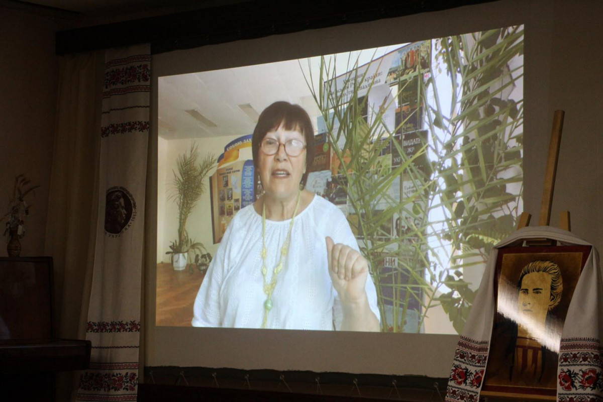 З цікавістю переглянули документальний фільм «Тепер я вдома» знятий у родинній садибі Косачів в Кололяжному та відеозапис де лунали вірші про Лесю Українку у авторському виконанні відомої письменниці, членкині Національної спілки письменників України Ніни Горик.