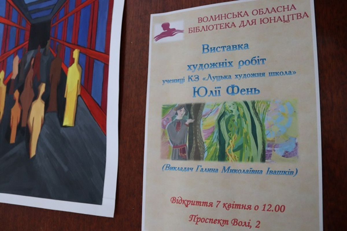 07 квітня в читальному залі Волинської обласної бібліотеки для юнацтва відбулась презентація робіт юної мисткині-фотографки учениці 9 класу Комунального закладу «ЛНВК ЗОШ 1-2 ст.№7» - природничий ліцей Юлії Фень, яка з дитинства захоплюється мистецтвом, і фотографією зокрема.