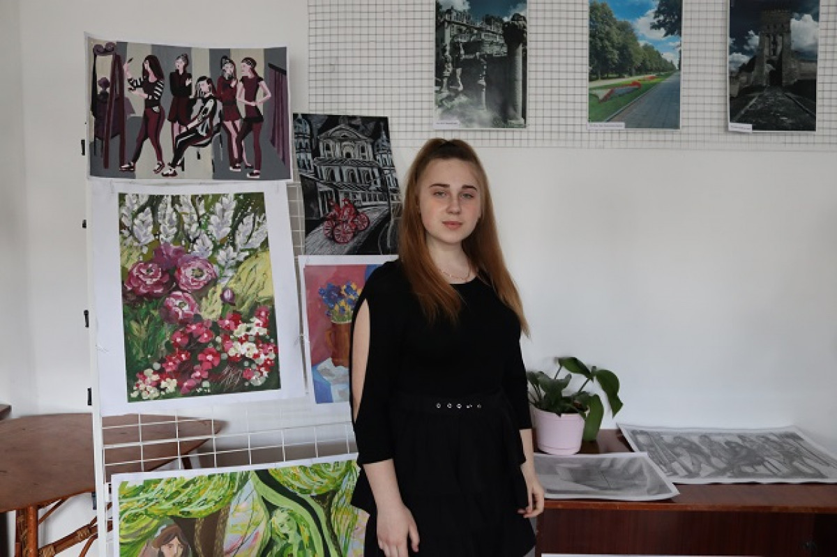 Юна аматорка презентувала свої роботи в слайдпоказі, продемонструвавши широкий спектр захоплень, це різні техніки: рисунок, натюрморти, паперопластика, соломоплетіннія, скульптура з глини тощо.