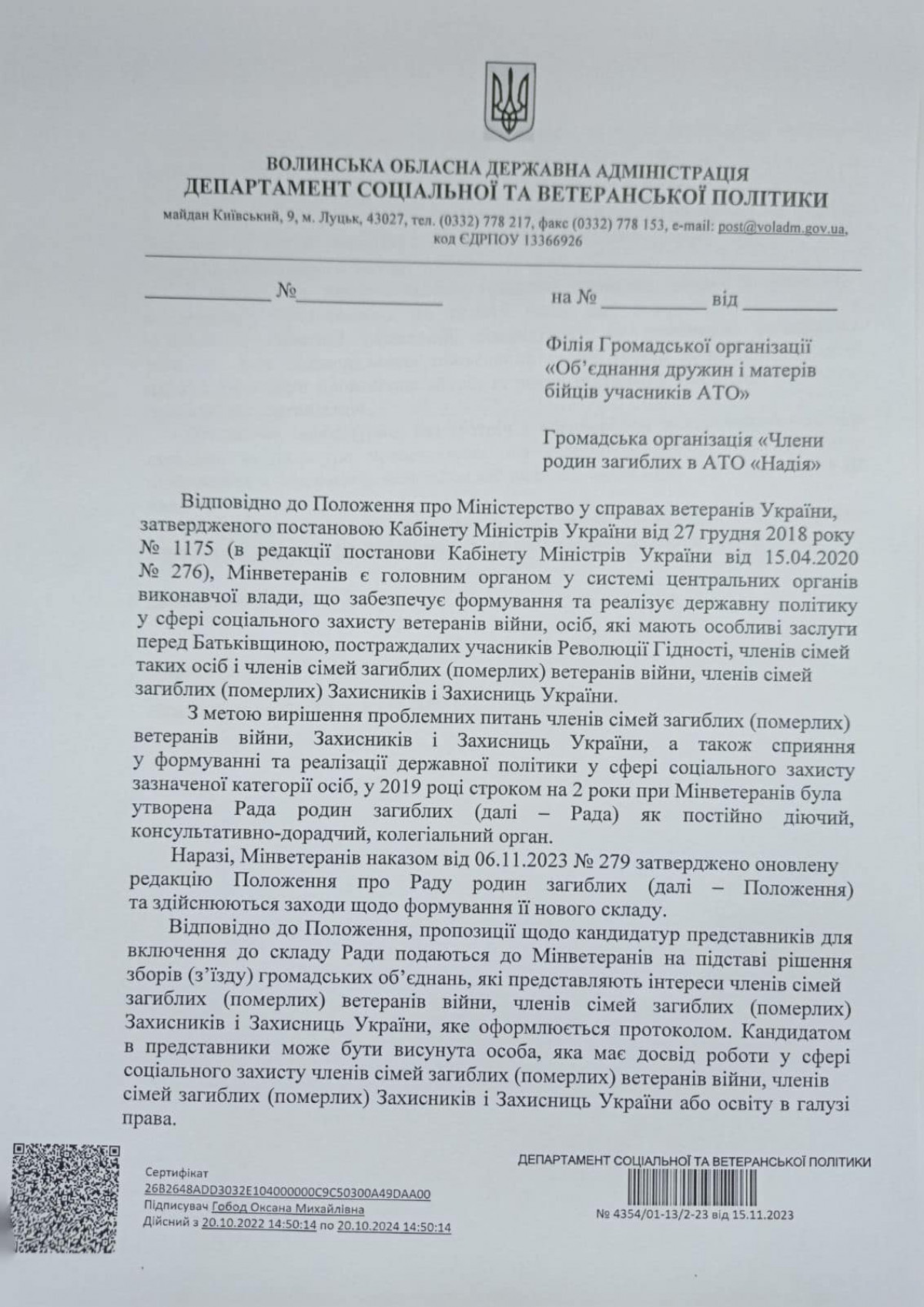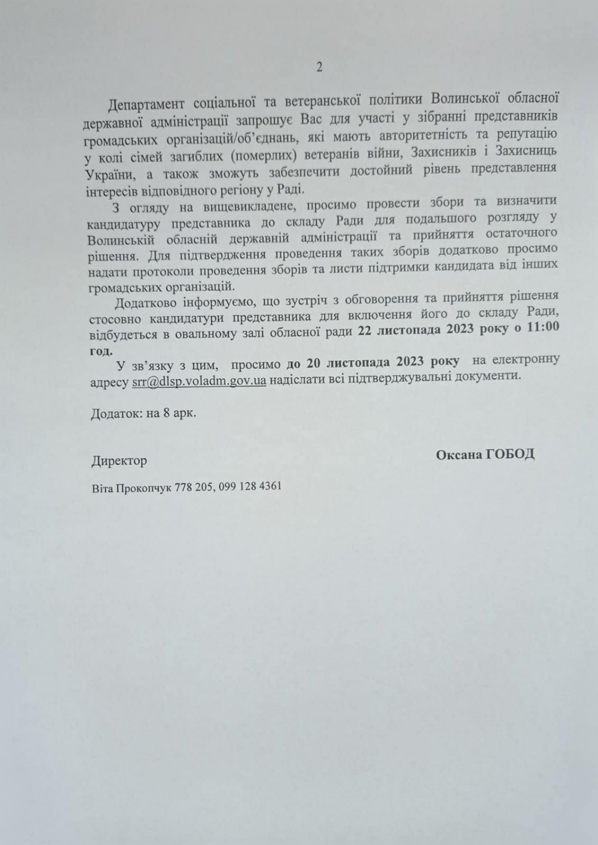 Департамент соціальної та ветеранської політики Волинської обласної державної адміністрації запрошує для участі у зібранні представників громадських організацій/об’єднань, які мають авторитетність та репутацію у колі сімей загиблих (померлих) ветеранів війни, Захисників і Захисниць України, а також зможуть забезпечити достойний рівень представлення інтересів відповідного регіону у Раді родин загиблих.