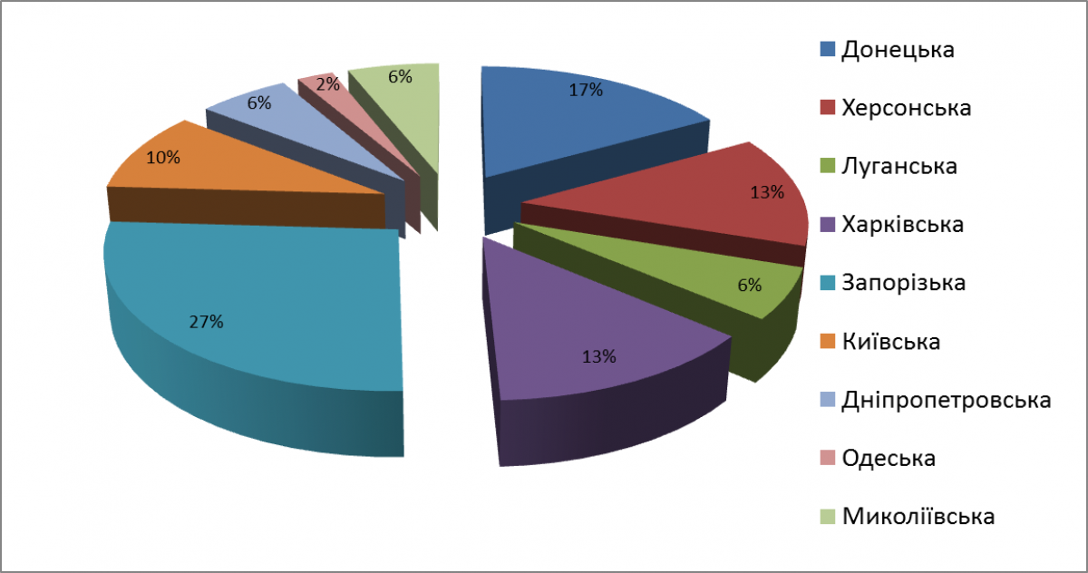 Протягом крайніх двох днів на території Волині прихисток знайшли ще 84 вимушено евакуйовані особи. Серед них, здебільшого, вимушено переміщені з Запорізької області (27%), менша кількість осіб евакуювались із Донецької (17%), Харківської (13%) та Херсонської (13%) областей. Інші області представлені на діаграмі.