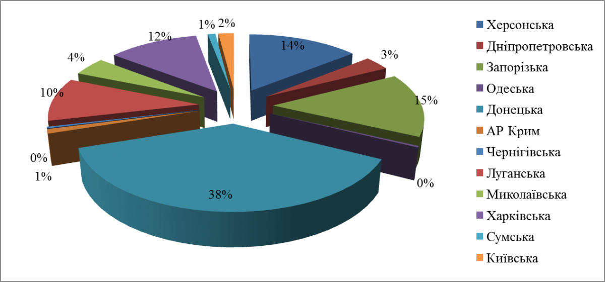 Протягом квітня 2023 року на території Волині прихисток знайшли ще 303 вимушено евакуйовані особи. Серед них, в найбільшій кількості, вимушено переміщені з Донецької області (38%), менша кількість осіб евакуювались із Запорізької (15%), Херсонської (14%), Харківської (12%) та Луганської (10%) областей. Інші області представлені на діаграмі. Серед яких, відзначені «0» області, з яких перемістилось менше 1% евакуйованих осіб.