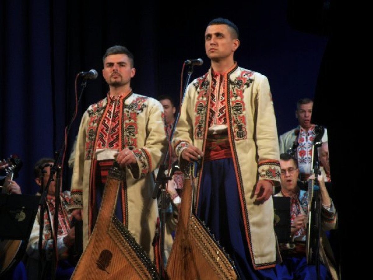 Важко, ‒ та що там, просто неможливо! ‒ уявити Національну заслужену капелу бандуристів України імені Георгія Майбороди без українських народних пісень, які є окрасою цього найстаршого в нашій країні музичного колективу. Слухачам були запропоновані такі зразки українського пісенного фольклору, як “Ой дуб, дуба” (виконав секстет солістів капели), “Скрипка би не грала”, “Ти казала: прийди, прийди” (солісти ‒ Максим Мельник та Денис Кузін), “Одна гора високая” (соліст ‒ Максим Воловоденко), “Із сиром пироги” (солісти ‒ Артем Варивода, Максим Пер’ян та Максим Воловоденко), “Ой служив я в пана” (солісти ‒ заслужений артист України Олексій Савчук і Тарас Козьменко). Останні дві композиції сприймалися, як маленькі музичні вистави комедійного змісту.