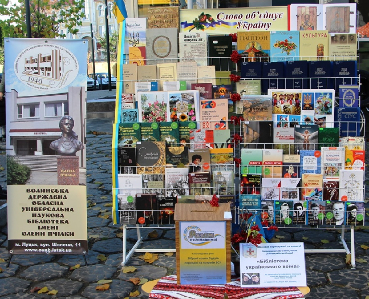 Ця благодійна акція об’єднала 9 листопада 2022 року на культурному фронті в Луцьку творчі колективи, аматорів та майстрів народного мистецтва, бібліотекарів, письменників ,любителів художнього слова та щирих патріотів своєї країни задля перемоги над підступним ворогом.