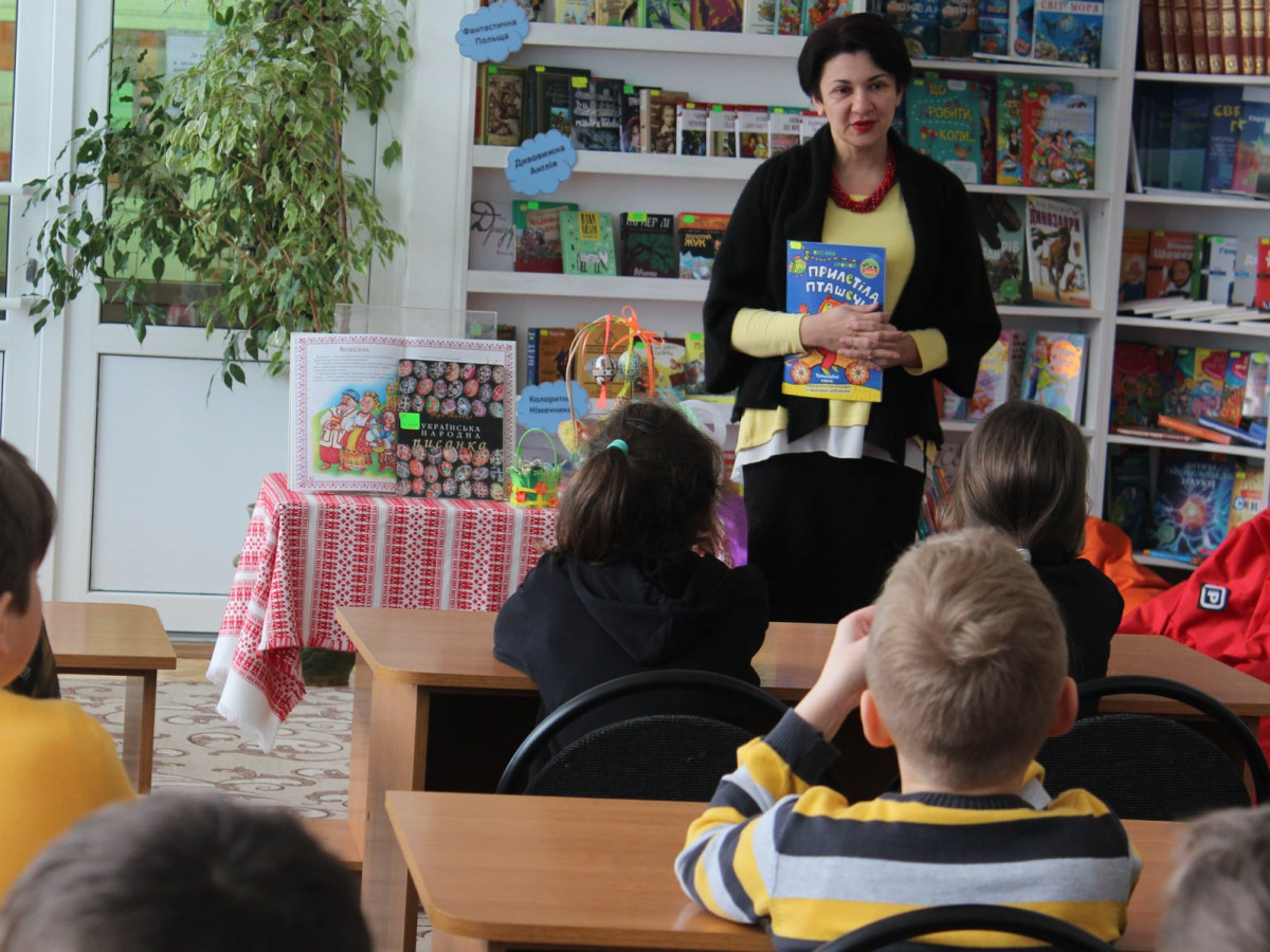 Книга письменниці Оксани Кротюк «Прилетіла пташечка» також стала поштовхом для розмови з користувачами бібліотеки – учнями 4-В класу Луцької гімназії №4 імені Василя Сухомлинського про Великдень, традиції святкування Пасхи в Україні.