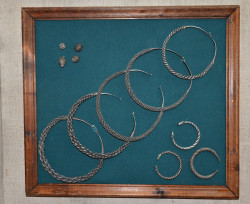 Скарби – це не лише гроші – монети й банкноти. Це і прикраси. Скарб – не обов’язково золото і срібло. Це може бути кремінь, як у нашому випадку – кілька сотень крем’яних відщепів – відходи виробництва неолітних знарядь праці. Це може бути недорогоцінний метал: фонди музею налічують кільканадцять десятків скарбів мідних монет, знайдених одномоментно в різних населених пунктах Волині на давніх торгових шляхах. Експонується один з найбільших – скарб польсько-литовських солідів Яна Казиміра, який налічує 1823 монети. Каталог музейних монетних скарбів вперше уклав і 1938 року видав відомий дослідник праісторії Волині, археолог і кустош музею Ян Фітцке (1909–1940). Музей володіє двома речовими скарбами: Качинський (прикраси кінської збруї) експонується в постійній експозиції; Городищенський (чоловічі шийні гривни і браслети) представлено на виставці. Скарби – це і прикраси: разки намиста скіфо-сарматського періоду, виготовлені з природного каміння, пасти, скла, кераміки тощо; походження – Південне Причорномор’я.