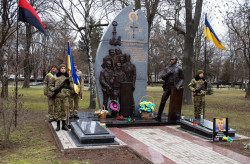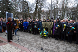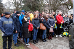 Під час громадської ходи, учасники зупинилися біля Будинку панахиди, аби попрощатися із загиблим на Сході волинянином, Борисом Шпачуком, кадровим офіцером, який помер 18 лютого 2020 року під час виконання бойових завдань у зоні проведення ООС в районі міста Волноваха Донецької області.