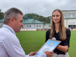 Олександр Хвіщук, на свято завітала заступник начальника управління-начальник відділу фізичної культури та спорту Василина Рубель(