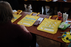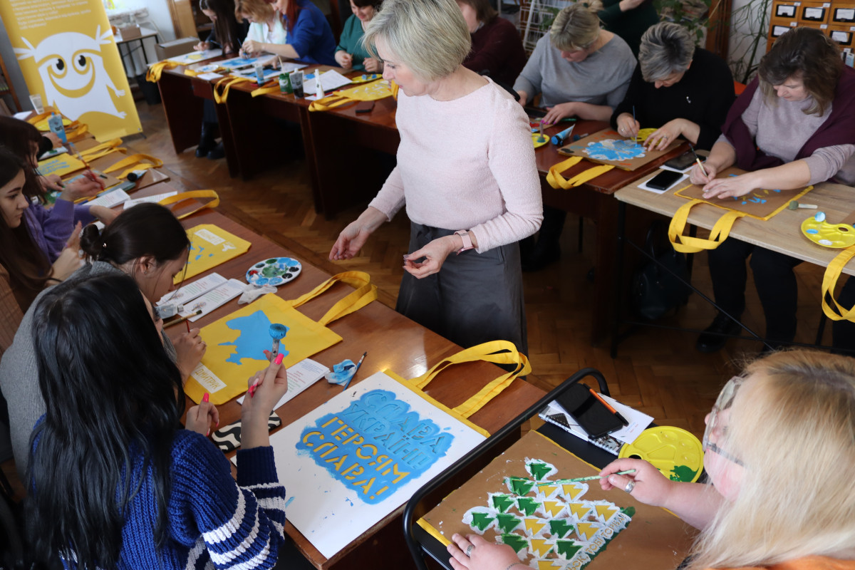 Розпочався він дещо нетрадиційно – майстерку з розпису шоперів у рамках проєкту «Кульок, тобі торба» провела заступниця директорки Волинської обласної бібліотеки для юнацтва Оксана Коба. Були розмальовані за допомогою патріотичних трафаретів торбинки, за які завдячуємо «КОМПАНІЇ ДМИТРУК».