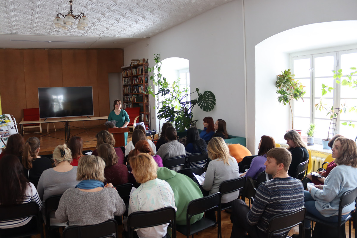 Методистка НМК ПС департаменту освіти Луцької міської ради Валентина Стасюк розпочала теоретичні заняття виступом на тему «Волонтерство як ресурс життєстійкості та соціальної активності людини».