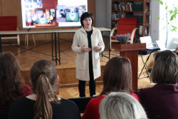 Презентацію вебліографічного проєкту бібліотеки для юнацтва із серії «Інформаційно-бібліографічний фронт» «Серцем покликані до милосердя» провела завідувачка інформаційно-бібліографічного відділу Р.услана Тимощук.