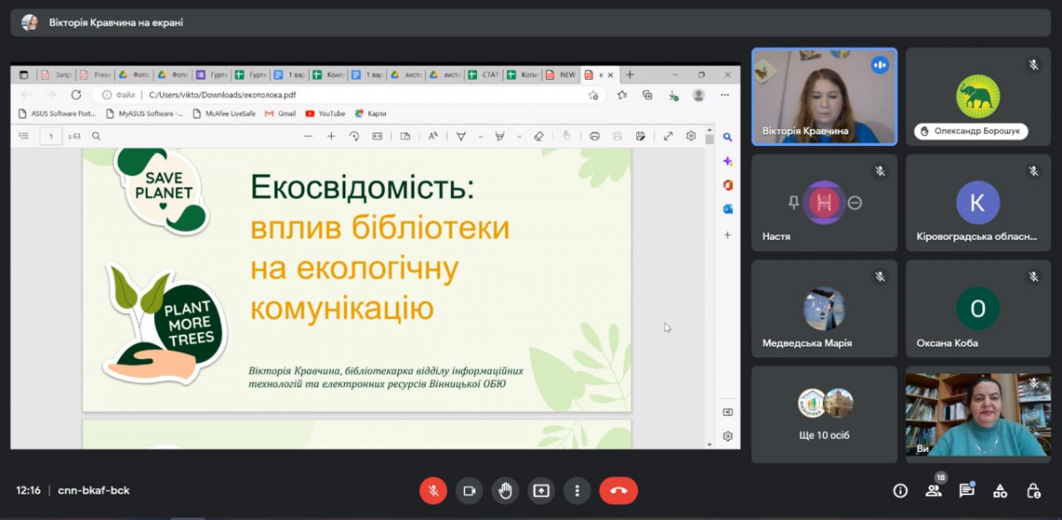 08 грудня на платформі MEET відбулася Всеукраїнська бібліотечна ЕКОТОЛОКА, зініційована Волинською обласною бібліотекою для юнацтва.