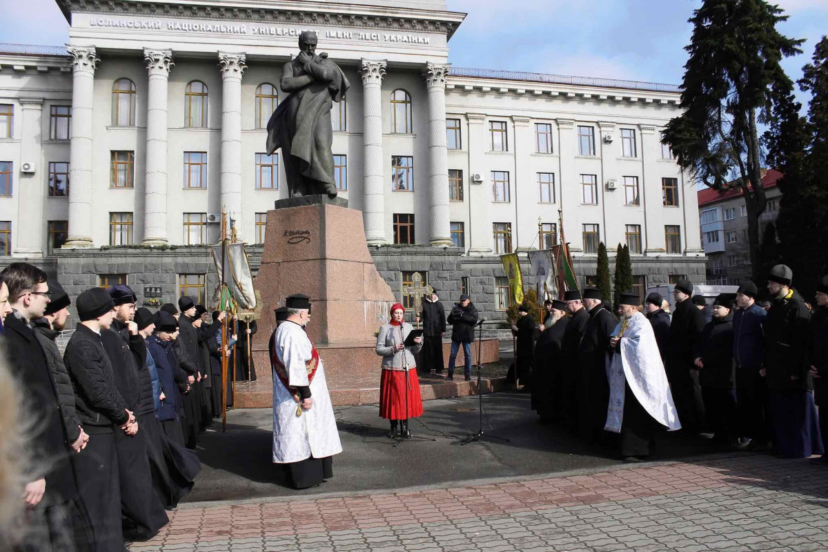 Священнослужителі Православної Церкви України відправили панахиду з нагоди річниці від дня смерті видатного поета, а учасники зібрання поклали квіти до підніжжя пам’ятника Великому Кобзарю. Настоятель Луцького Свято-Троїцького кафедрального собору Православної Церкви України отець Миколай (Нецькар) наголосив на неймовірній силі поетичного слова Тараса, яке зцілює і наповнює енергією кожного українця на ратні патріотичні справи. Особливо пророчим і актуальним є його заклик «порвати кайдани» у справедливій боротьбі за волю.