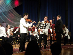 Та справжній сюрприз для глядачів приготували згадані вже солісти – Олександр Семчук та Катальдо Де Пальма, – з’явившись перед очі лучан… в українських вишиванках. У руках у пана Катальдо замість скрипки уже був альт, і саме партію цього інструмента Маестро виконував у заключному номері дійства – Концертній симфонії для скрипки, альта і струнних мі бемоль мажор Вольфґанґа Амадея Моцарта. Інструменти обох музикантів то перегукувалися, то зливалися в дует, а самі митці, схоже, перебували у дуже доброму гуморі від того, як їх приймає публіка. Зрештою, першою фразою, з якою пан Олександр звернувся до слухачів, було: “Ми зворушені!”. Маестро привітав присутніх зі створенням Української помісної православної церкви, а потім уся зала стоячи слухала, як ці двоє по-доброму одержимих мистецтвом людей грали для лучан у пам’ять про полеглих за волю й незалежність України…
